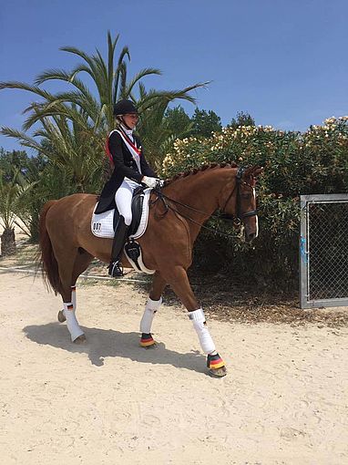 Die deutschen Farben vertraten im Rahmen der Europameisterschaften der Jungen Reiter Leonie Richter und ihr Belissimo M-Sohn Babylon. Nachdem sie mit über 70 % den Grundstein für die Goldmedallie des deutschen Teams legen konnten, gewannen sie auch in der Einzelwertung 2 fantastische Medallien!
