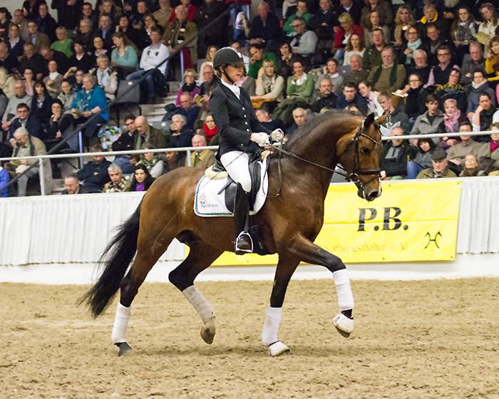Aufgrund seines hervorragenden Veranlagungstests wurde Sweet Hero als einer der besten 4jährigen Hannoveraner Hengste zur Privathengsthalterschau nach Verden eingeladen. Nachdem schon Dantano im letzten Jahr dort den Weltmeyer-Preis verliehen bekommen hat, haben wir uns sehr gefreut, dass wir auch in diesem Jahr mit Sweet Hero bei dieser toll organisierten Hengstschau dabei sein durften. Sweet Hero enttäuschte uns nicht und konnte mit einem tollen Auftritt das Interesse vieler Hannoveraner Züchter wecken.